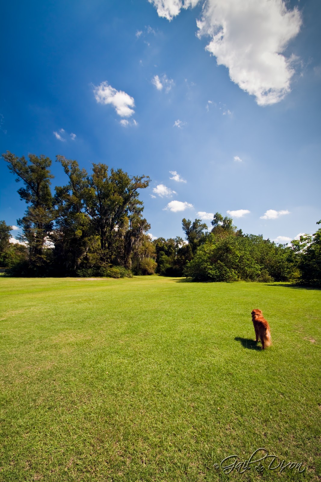 What a wonderful place for Chance to be free! You have a WOW!! back yard!! Such a great place to throw the ball and play chase!! You probably won't see fall color leaves until the end of Dec. or Jan. with all that neat spanish moss hanging! I look forward to hearing more about your "kids!!"